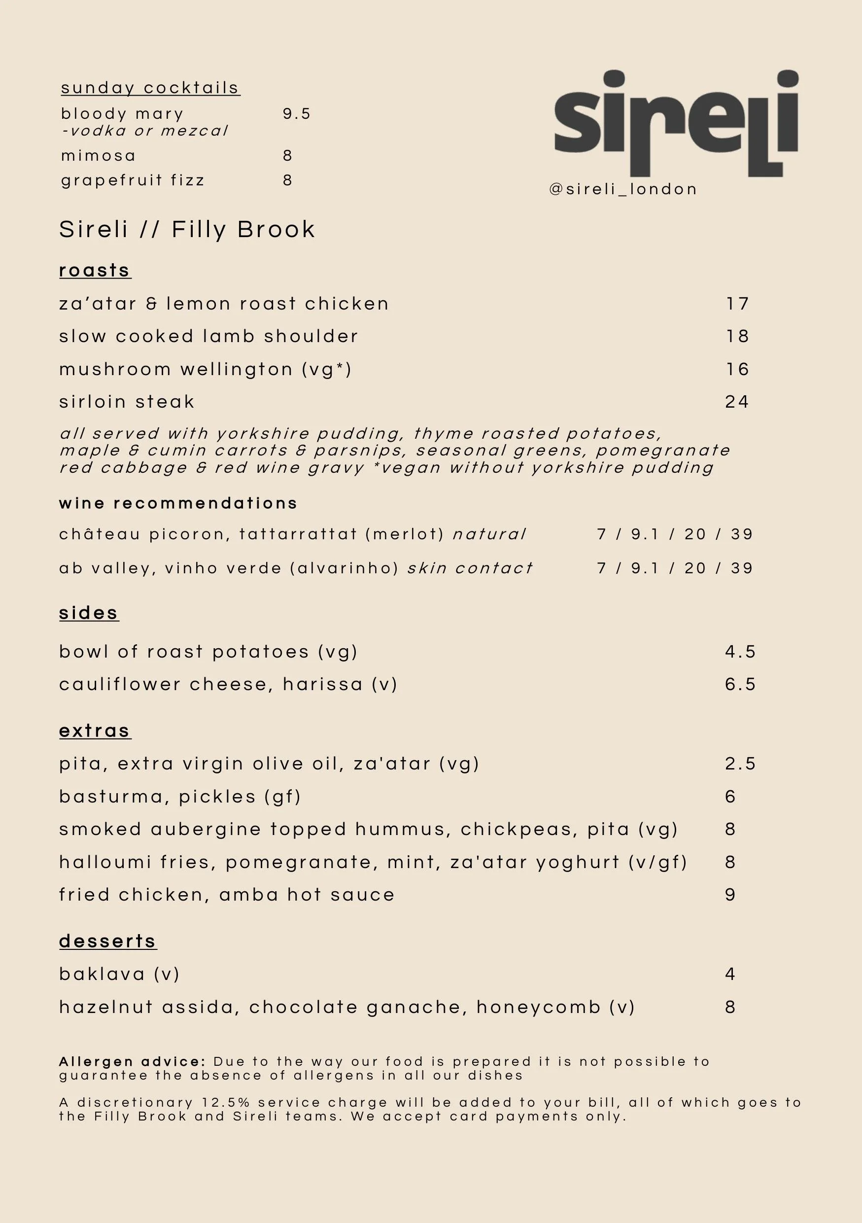 FILLY BROOKOur ever-changing menu at Filly Brook is focused on Armenian-inspired small plates.Wed to Friday: 5 - 10PMSaturday: 1 - 10PMSunday Roasts: 12 - 6PM392 Grove Green Road, Leytonstone, London, E11 4AP